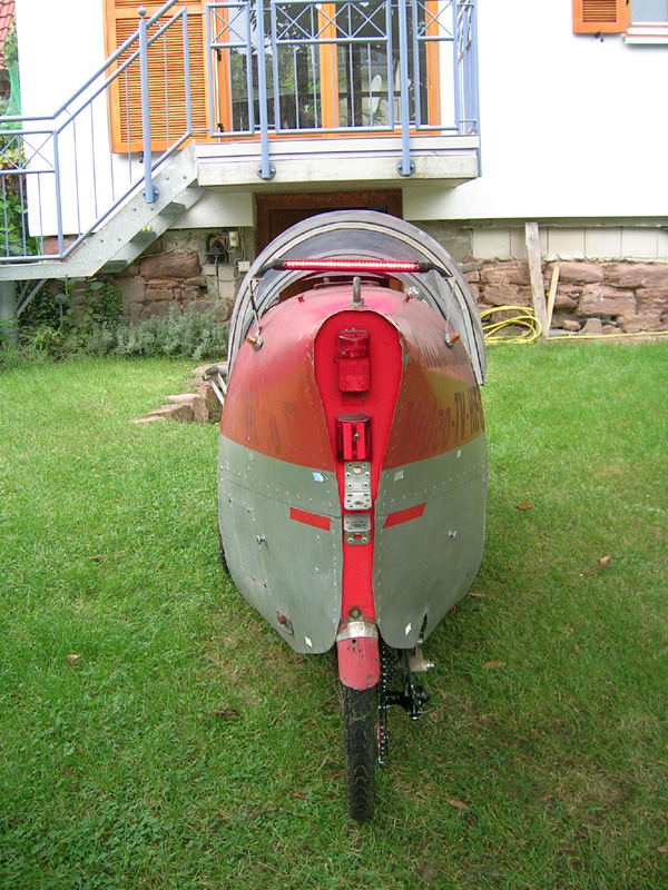ich nicht viel Arbeit investiert. Im Hinterrad kann man die Trommelbremsnabe aus dem Tandem erkenne,