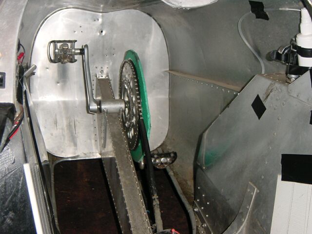 vordere Tretlager. Das einzige Stueck Leertrum der vorderen Kette liegt zwischen dem hinteren