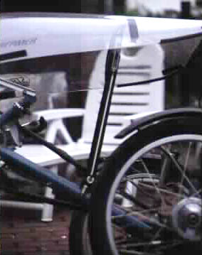 Lenkgestänge (d.h. den Gelenkkopf) der indirekten Lenkung eines Liegerads