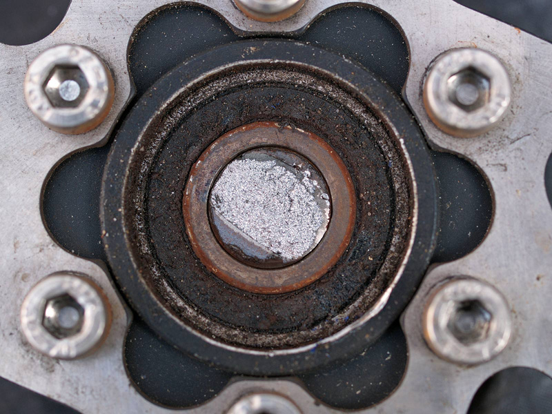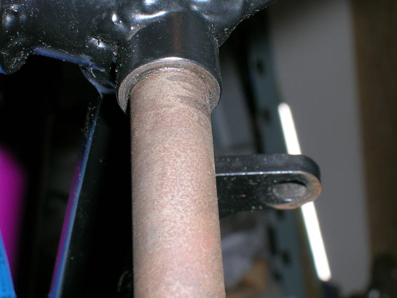 Als ich dann endlich wieder Zeit fand, begann ich die hochwertigen Lenklager, die ich zwischenzeitlich besorgt hatte, zu montieren. Beim Nachfräsen der Sitze im Rahmen zeigte sich, daß das nicht nur dringend nötig war (Rohr unrund durch Schweißverzug), sondern auch noch nie geschehen war. Nun ja, Steintrikes hatte ja auch ein Lager mit deutlich erkennbaren Pittings (nach ca. 500 km Laufzeit) wieder montiert, als sie meine alten Achsschenkel in das neue Rahmenteil montierten.