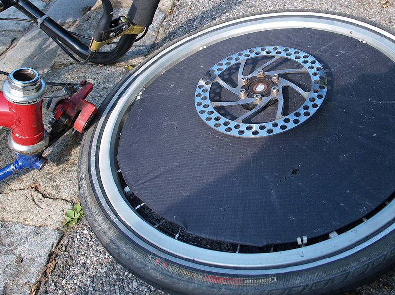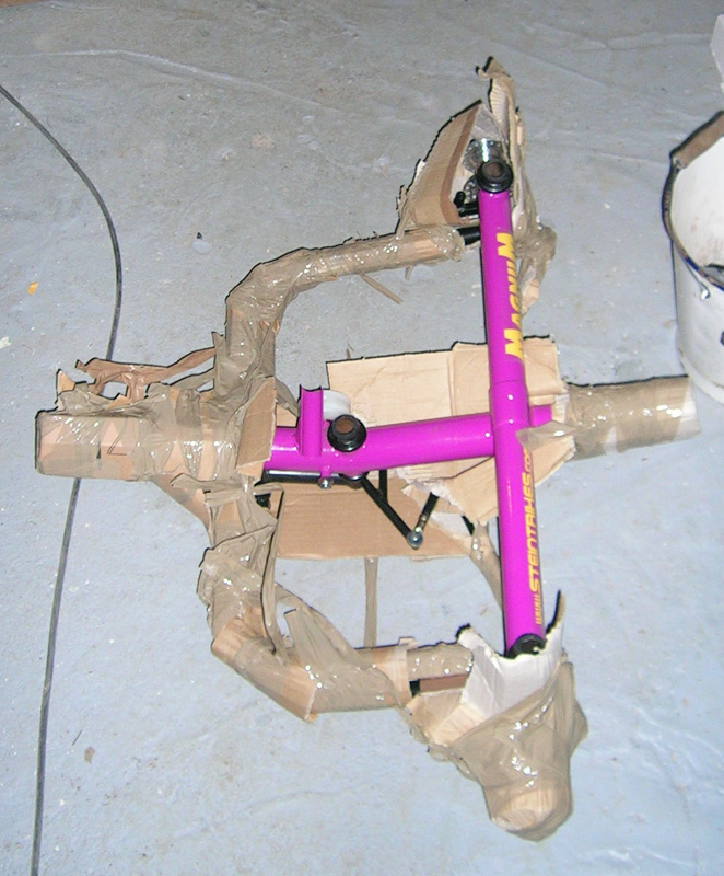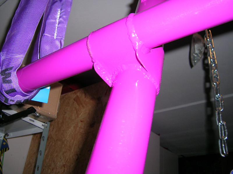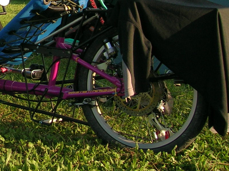 Zur Ursache wurden zwei Erklärungen angeboten, nämlich daß die hydraulischen Bremsen zu stark gewesen seien (wenn die werksseitig angebotenen mechanischen Bitex-Scheibenbremsen wirklich so schwach sein sollten, daß man die Räder nicht zum Blockieren bringt, halte ich sie für ungeeignet für diese Anwendung) und das alte Schweißgerät ... aber das sei jedenfalls zukünftig kein Problem, denn ich käme jetzt in den Genuß der inzwischen verwendeten höherwertigen Stahlrohrqualität.