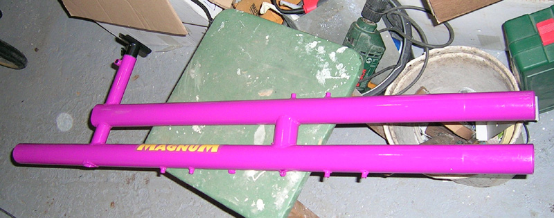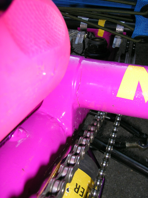 Wir haben dann noch zwei oder drei Tagestouren ohne Gepäck unternommen und im Herbst (2005) habe ich das defekte Rahmenteil ausgebaut und zu Bike-Revolution geschickt. Thomas Seide hatte mir mitgeteilt, daß die Geometrie meines Magnum vom zu diesem Zeitpunkt aktuellen Serienstand abwich und vom beschädigten Rahmenteil abgemessen werden müsse. Ich erklärte, es sei nicht eilig (vielleicht ein Fehler).