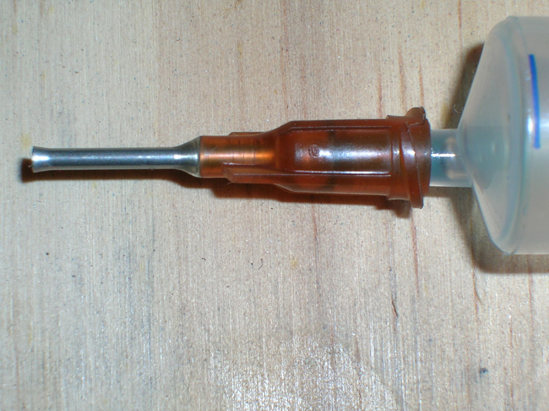 Verlegung der Bremsleitung ausprobiert. Die zuerst vorgesehene Variante wie bei den Greenspeed-Bowdenzügen an den Spurstangen befestigt funktioniert wegen den extremen Lenkeinschäge und den dadurch bedingten extremen Winkeln nicht. Mit dem Winkelabgang (den ich noch von den HS-66-Griffsets übrig habe) am Nehmerzylinder kann man eine sehr schöne U-förmige Schleife über die Spurstangen und Ausleger legen. Bremse danach mit mäßigem Erfolg entlüftet, Anleitung gelesen, nochmal entlüftet. Problem beim Entlüften ist die geringen Kapazität des Ausgleichbehälters der Bremse, daher mit einer aufgeweiteten Dosierkanüle und einer Spritze einen voluminöseren Ausgleichsbehäter gebaut, der mit Presspassung in der Verbindung zwischen Ausgleichsbehälter und Geberzylinder stecken bleibt.