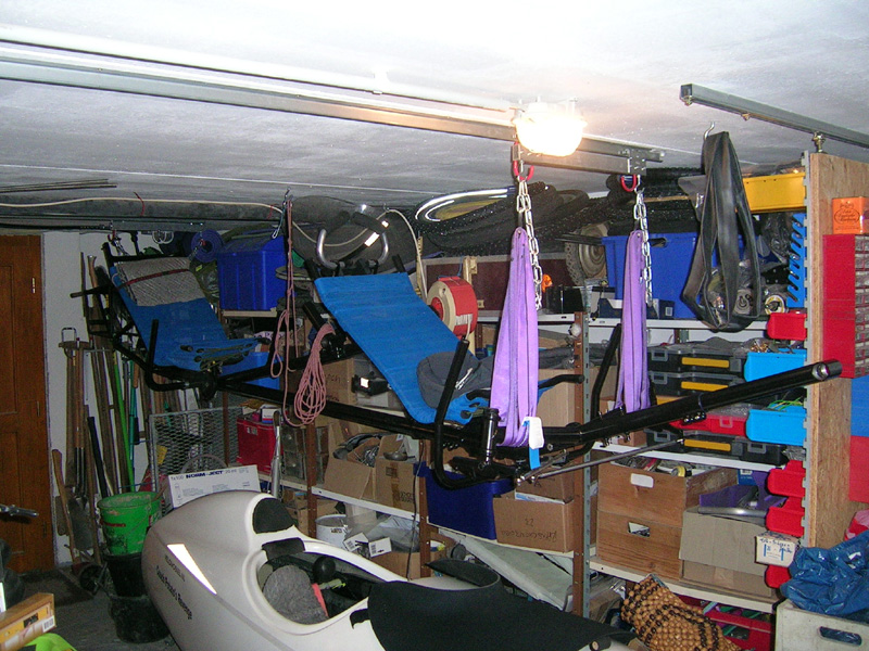 Und ich kann es alleine von der Kellerdecke abhängen, durch die Kellertür bugsieren, die Rampe hoch, und durch das Gartentor – solange keiner davor parkt.